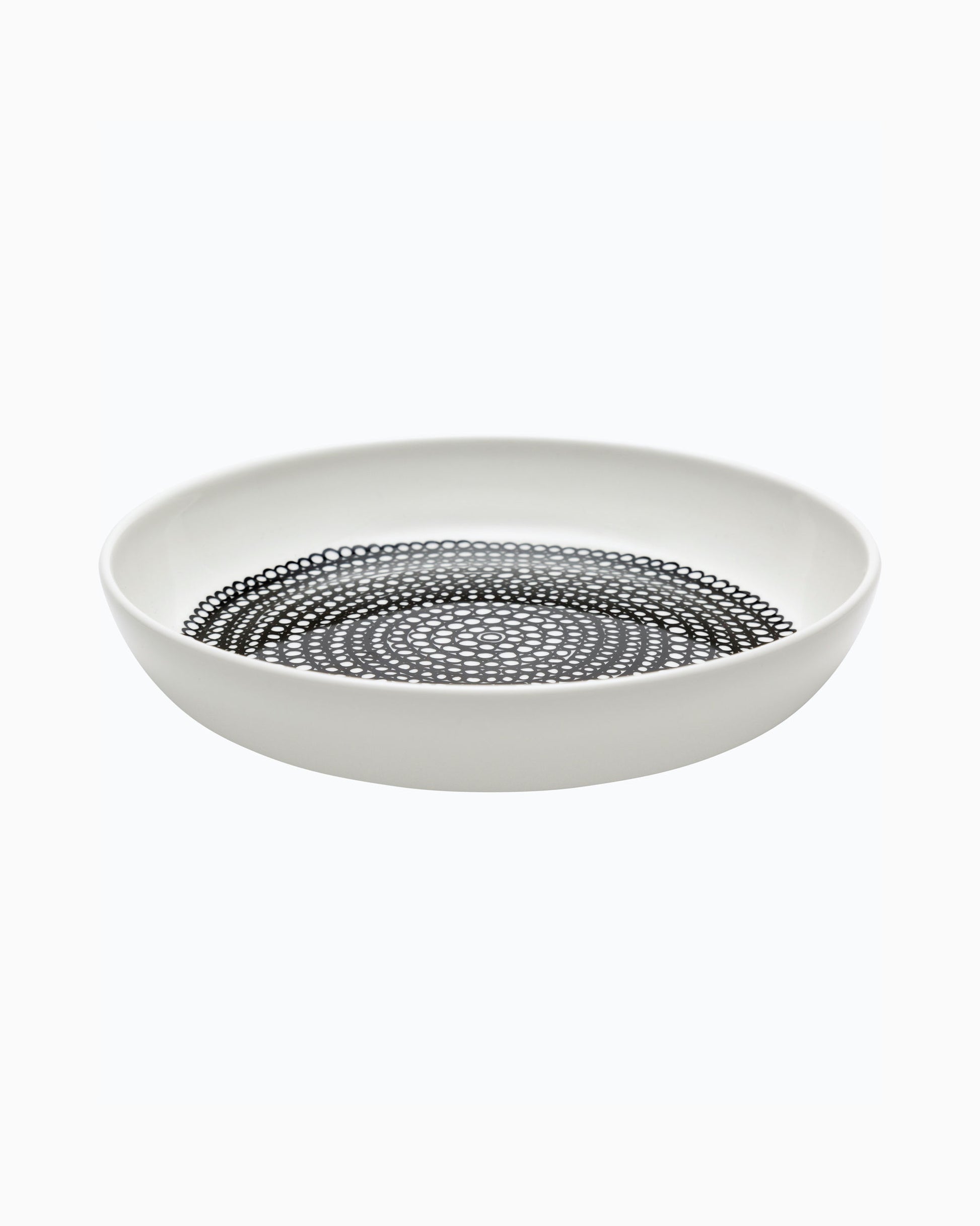 The Oiva slightly deep plate is made of white stoneware and it features the Räsymatto pattern. The plate is dishwasher, oven, microwave and freezer safe.