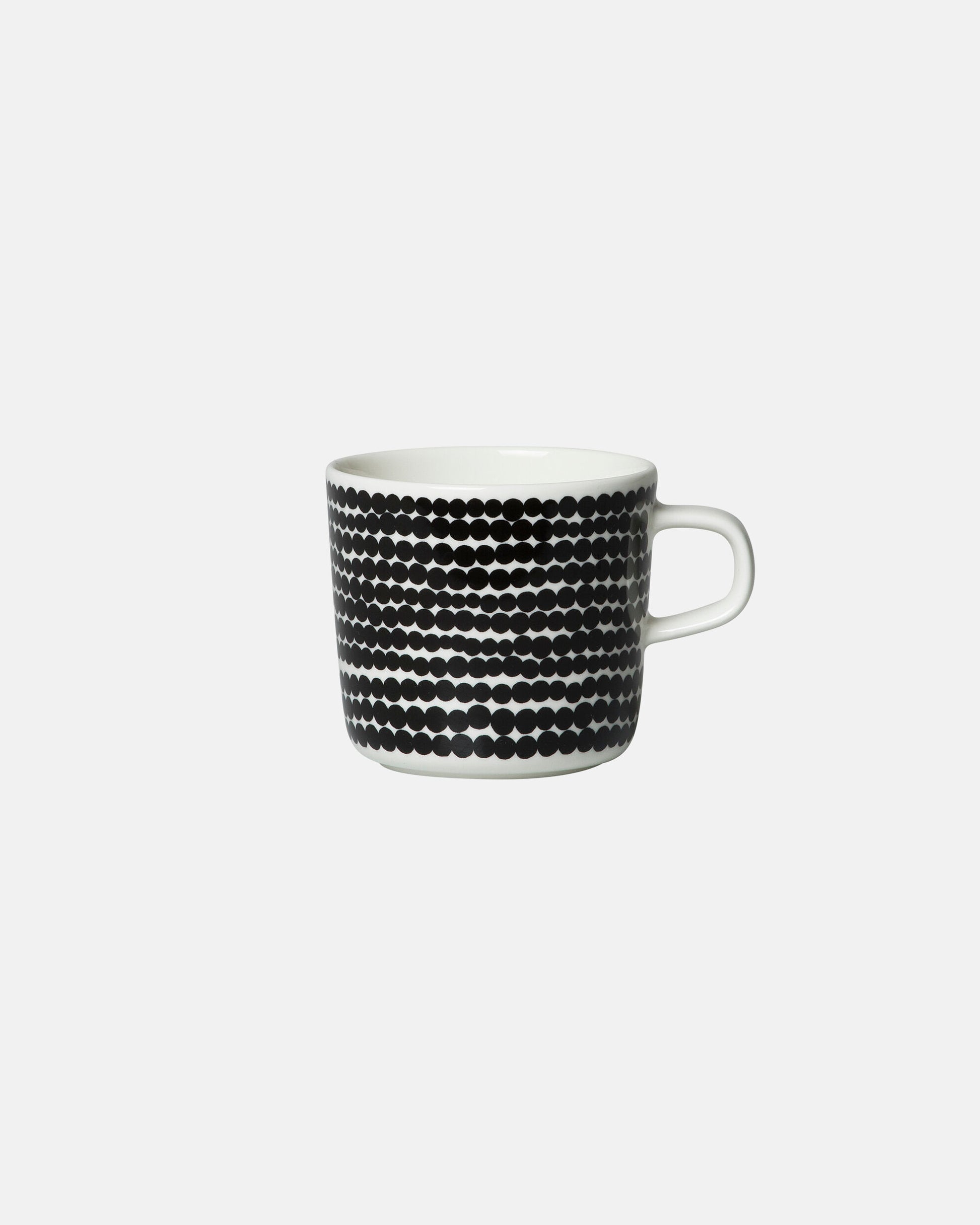In the Räsymatto pattern on this Oiva coffee cup you can see a rag rug placed on the floor of a garden cottage, with rays of sun dancing on its figures. The cup is made of dishwasher, oven, microwave and freezer proof white stoneware.